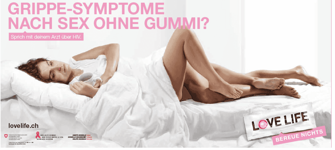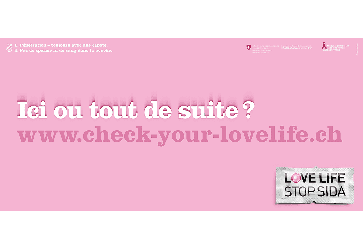 La première campagne nationale de prévention du VIH date de 1987. Depuis, l’Office fédéral de la santé publique (OFSP) collabore avec des organisations partenaires pour informer, chaque année, la population sur la protection contre le VIH au moyen de spots et d’affiches. Le slogan STOP SIDA, utilisé à l’origine, a cédé la place à LOVE LIFE – STOP SIDA, puis à LOVE LIFE en 2005. Depuis 2011, la campagne informe également sur les autres infections sexuellement transmissibles (IST) et le safer sex.